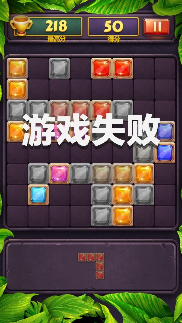 游戏失败:游戏过程中,选块区的宝石方块如果无法移动到游戏区,本局认定为游戏失败。